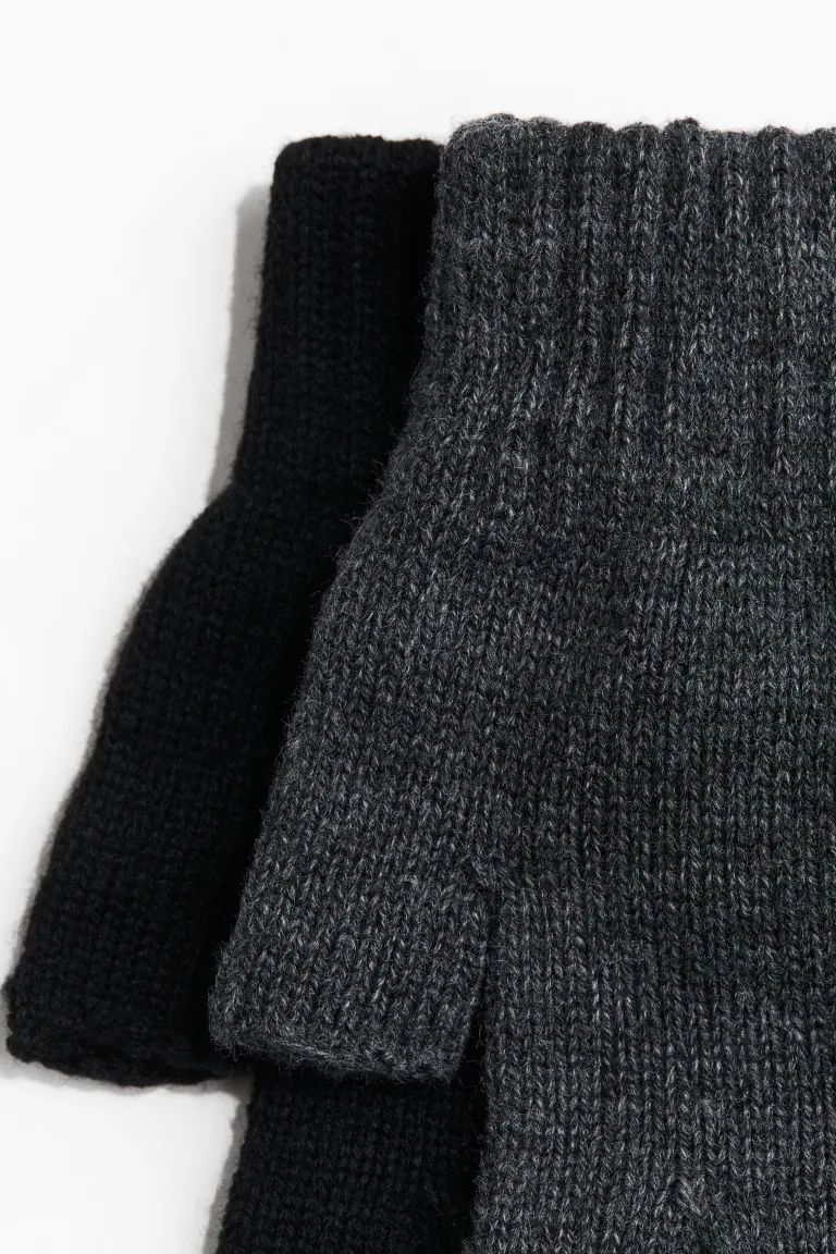 Fingerless gloves in a soft, fine knit with ribbed cuffs.
